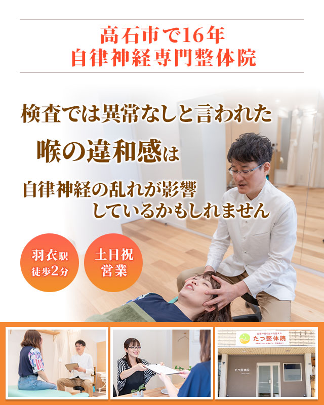 これは決して「気のせい」という意味ではなく、喉の違和感の多くは、“自律神経の乱れ” が関係しているために検査では異常がでません。