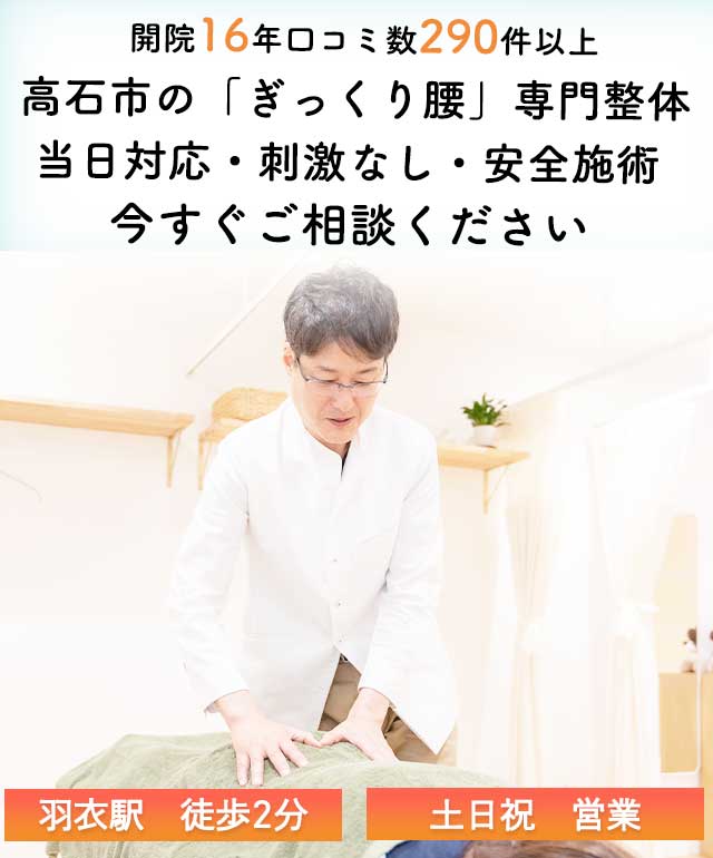 | A/ はい、当日施術できます。 ぎっくり腰は早めのケアが改善の近道です |